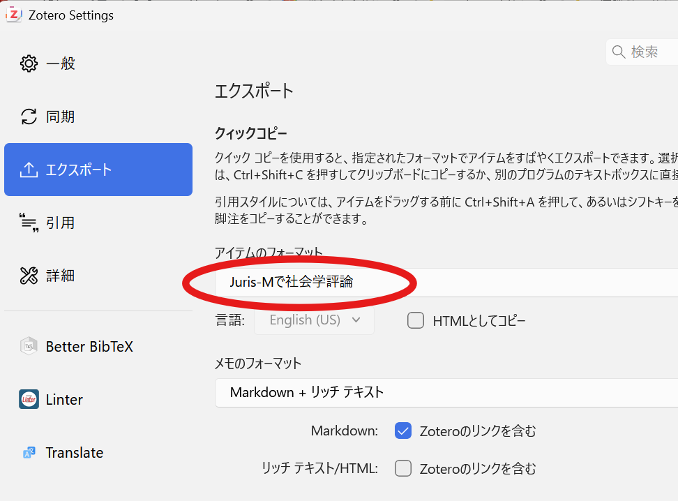 社会学評論スタイルガイドに準じた文献リストの自動出力 :後述。これはZoteroをインストールするだけではできるようにならない。邦文書/欧文書/翻訳書を区別して書誌情報を出力可能 。