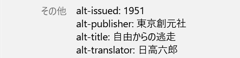 たとえばフロムの『自由からの逃走』の場合は、「その他」フィールドに以下のように手入力する*7 。