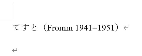 Wordを開き、Zoteroタブまたはショートカットキー等から「Add/Edit Citation」を呼び出す。検索欄に「Fromm」などと入力し、「Escape from Freedom」を選択する。
